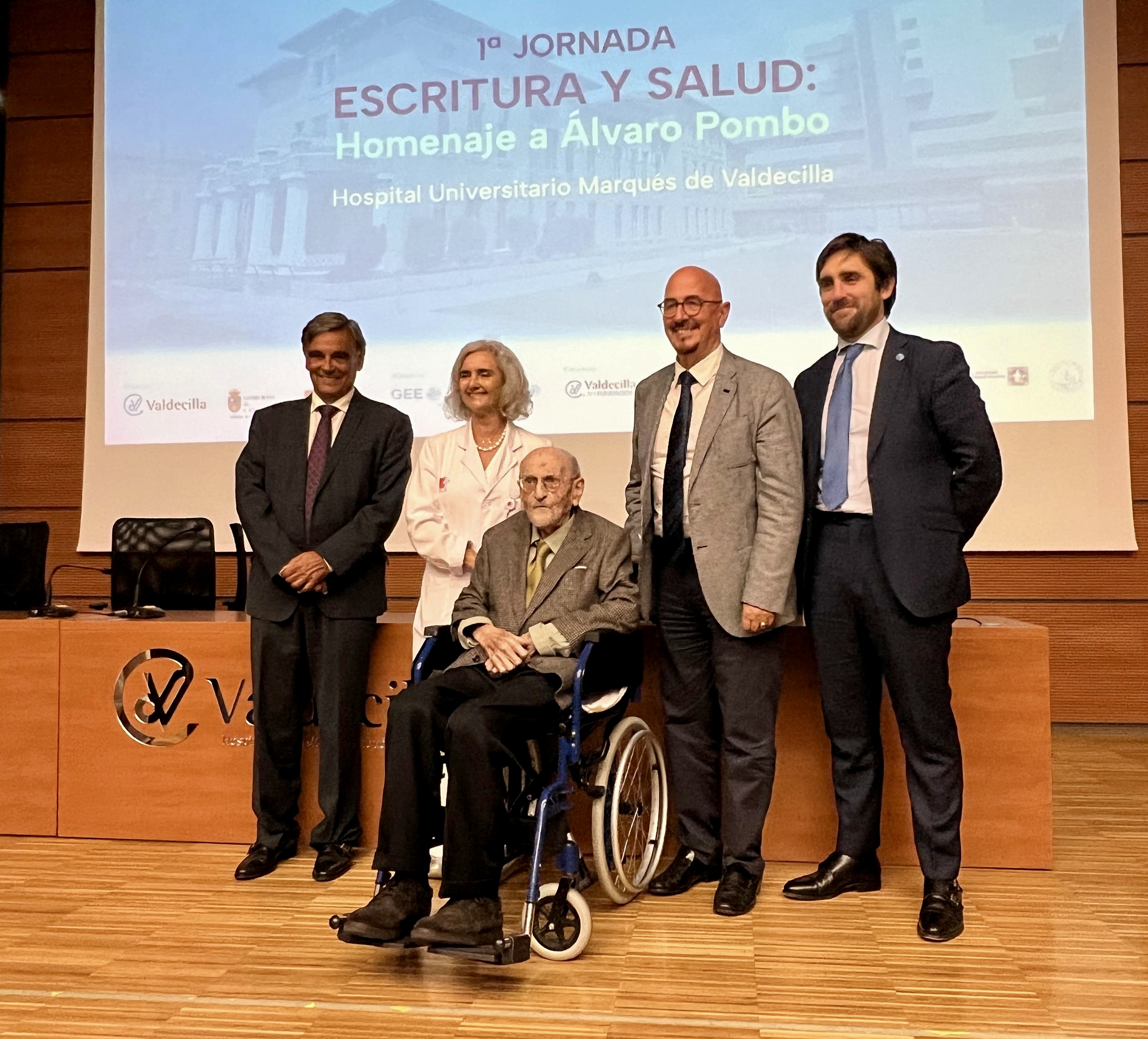 El consejero de Salud del Gobierno de Cantabria, César Pascual, ha entregado esta tarde la insignia de oro del Hospital Valdecilla a Álvaro Pombo, en un acto en el que ha abogado por fortalecer esta apuesta del centro sanitario por la cultura, y ha destacado su importancia, junto a la ciencia, en la formación de los futuros médicos, que "serán el alma del hospital".