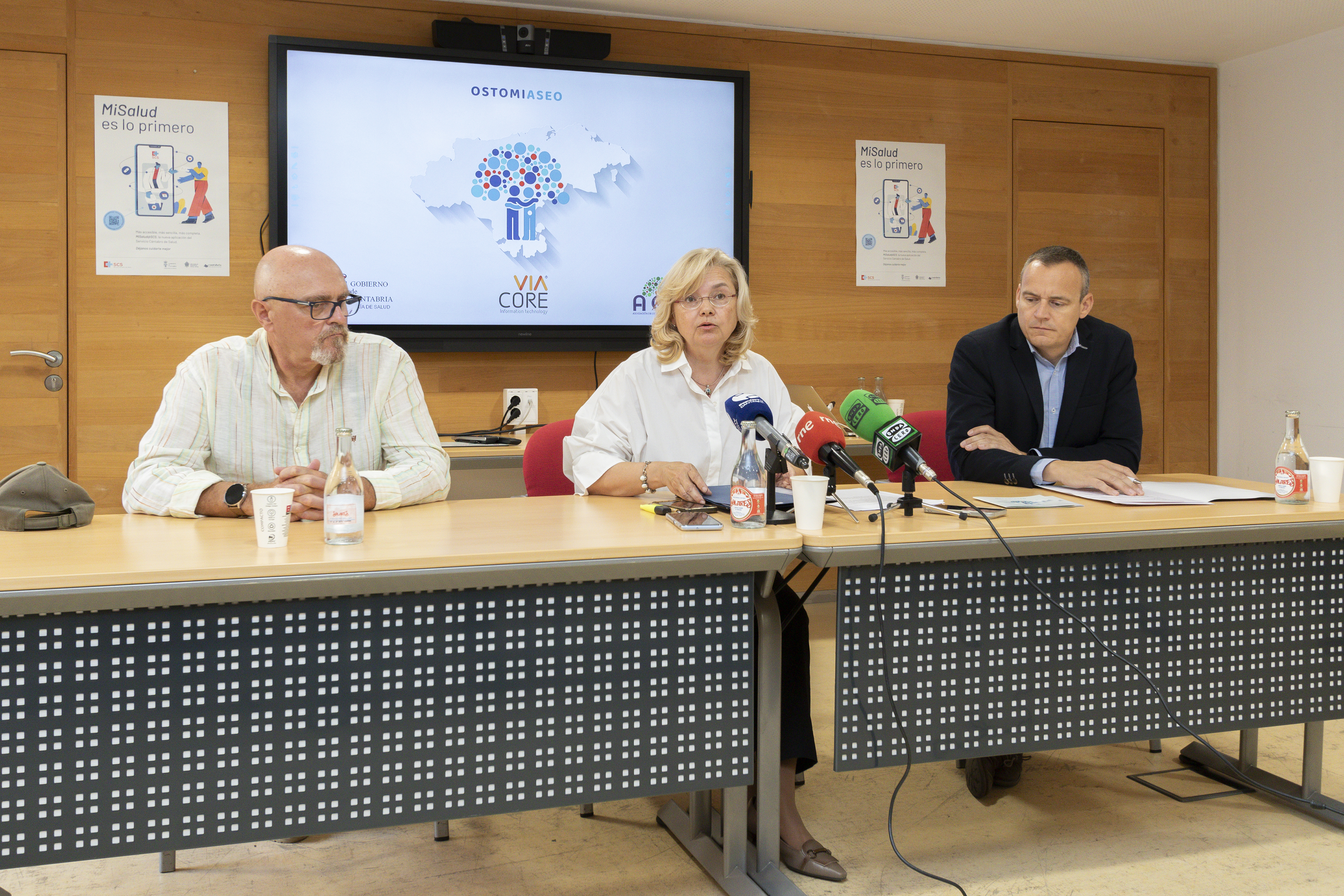 Este lunes se ha presentado en la sede de la Consejería de Salud esta app móvil que beneficiará a cerca de 210.000 personas ostomizadas en España, de las que casi 1.000 se encuentran en Cantabria. Al acto ha asistido la directora general de Farmacia, Humanización y Coordinación Sociosanitaria, María Isabel Priede; el presidente de la Asociación de Ostomizados de Cantabria, Ignacio Escobedo, y el director de Desarrollo de Negocio de Viacore IT, David Pérez.