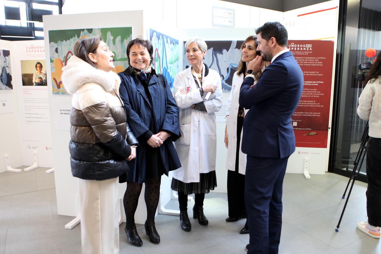 El Hospital Sierrallana ha inaugurado esta mañana la exposición 'Retratos con esperanza' que busca aumentar la visibilidad del cáncer de mama triple negativo metastásico (CMTNm) mediante una muestra plástica que expone la realidad y esperanza de las pacientes y familiares.